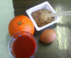 納豆とゆで卵と野菜ジュースです。まだ納豆続けています(笑)。