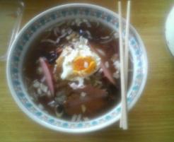 昼食は実家で食べたチリチリ縮れラーメンです。