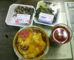 夕食は、青森の事務所で食べた生協で買ったお惣菜と野菜ジュースです。