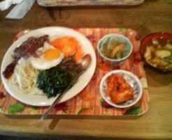 18日昼食は居酒屋ぽーのランチです。金曜日はビビンバ定食と決まっています。うまかったです。(^ー^)