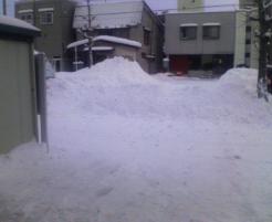 15日朝の職場の裏の駐車場の雪カキ後の写真です。