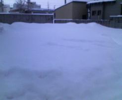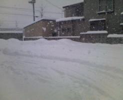 15日朝の職場の裏の駐車場の雪カキ前の写真です。表の駐車場より降っていて30センチ近く積もっていましたよ。