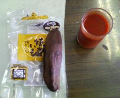朝食は職場で食べました。 おいもやさん の電子レンジでチンして食べる焼き芋と野菜ジュースです。