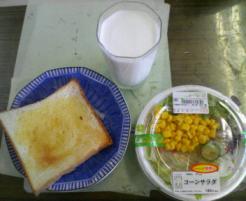 昨日の朝食は牛乳、トースト、野菜サラダです。