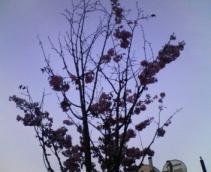 この桜は青森県警本部前の桜です。八重桜でしょうか?朝早く(5時20分ころ)撮ったので画像が暗いです。