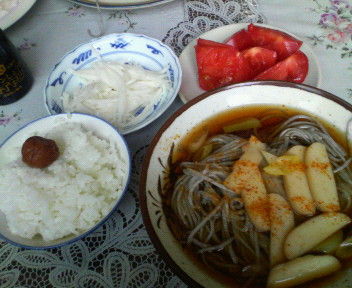 一昨日の昼食は胡麻ソーメン、長芋千切り、トマト、ご飯です。