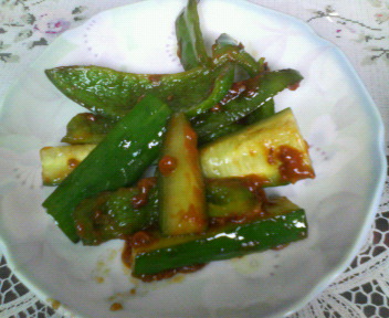 一昨日の昼食に食べた麻婆キュウリ、ピーマンです。