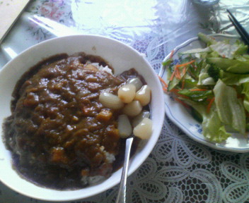 一昨日の朝食はカレーライスと野菜サラダです。