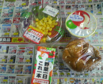 昨日の朝食は実家のジャムパン、野菜サラダ、野菜ジュース、ヨーグルトです。