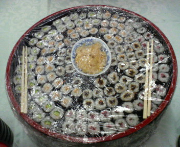 旗開きで食べた物の画像です4。巻き寿司
