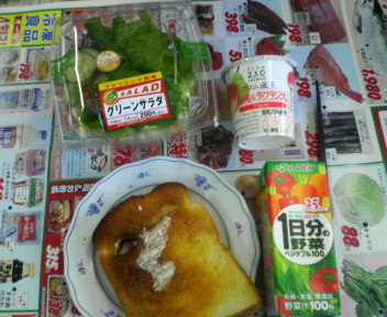 昨日の朝食はトースト、野菜サラダ、野菜ジュース、