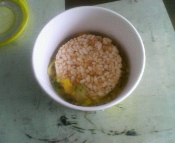 スープおこげお湯を入れた画像です。