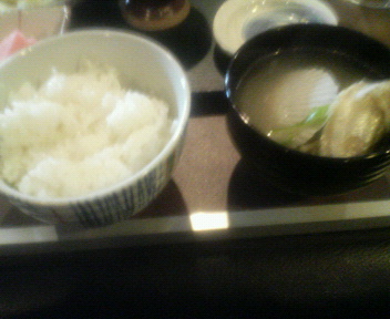歓都里おまかせ定食1000円のご飯とホタテとハタハタ味噌汁です。