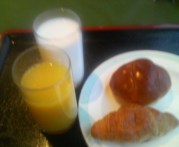 昨日の朝食は芝弥生会館で食べたパンと牛乳とオレンジジュースです。