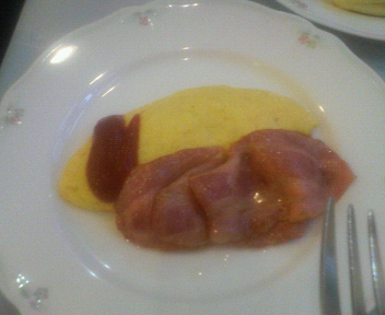 昨日の朝食は泊まったホテルです。同じホテルですので基本的に同じですが卵がスクランブルエッグから卵焼きにソーセジがベーコンに変わっていました。