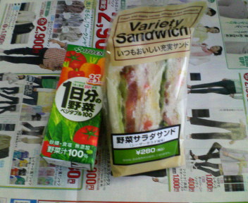 昨日の朝食は会議の資料作りで忙しかったものですから簡単にサンドイッチと野菜ジュースです。