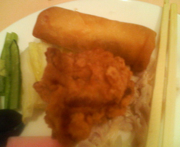 青森ペンクラブ新年会で食べた物の画像です3。鶏唐揚げと春巻きです。