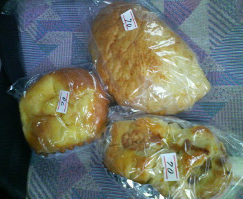 木曜日の昼食は外回りの車の中で食べた実家のパンです。チクワツナパン、カレーパン、クリームパンです。