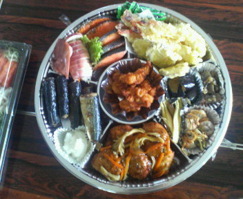 日曜日の昼食はオラの町内会のスポーツレク大会の後の懇親会で食べたオードブルです。