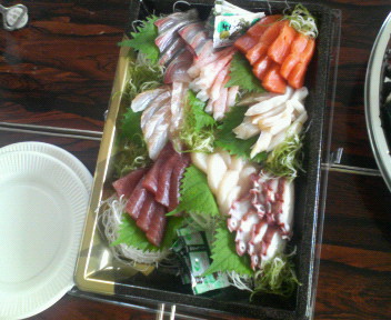 町内会のスポーツレク大会の後の懇親会で食べた刺身もりあわせです。