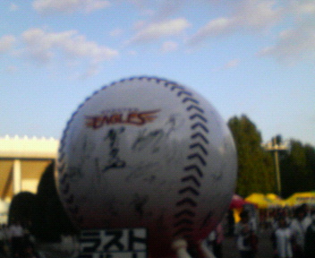 そしてKスタについてまずは正面にある巨大ボールを撮影。