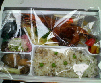 そして エリムのいずみさんと 昼食。今日調子が出ない山崎武司のために山崎武司弁当を買って食べました。