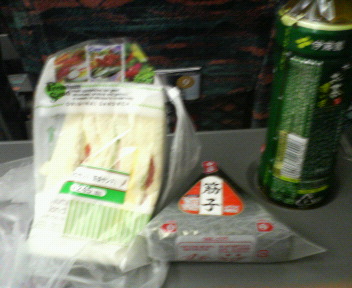 昨日の夕食は帰りの新幹線の中で筋子オニギリと野菜サンドです。いつもの粗食に戻りました(笑)。