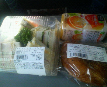 10月4日の朝食はKスタに向かう途中で新幹線の中で食べたサンドイッチとカレーパンです。