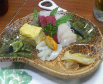 10月5日の夕食はオラの入っている同人誌「遥」の例会でした寿司屋千成でやりました。刺身他です。