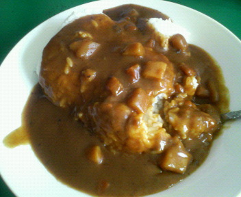 11日の昼食はローソンのレトルトカレー大盛りです。