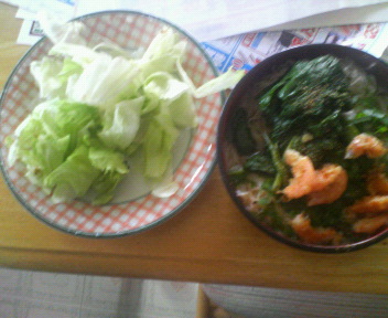 13日の朝食は実家です。納豆ご飯、味噌汁、すき昆布、トマト、レタス、ポテトサラダ、ラ・フランスです。こまい、さんま煮付けです。