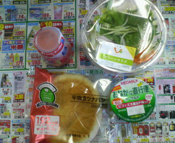 1月7日の朝食はヒラツナパン、野菜サラダ、野菜ジュース、ヨーグルトです。