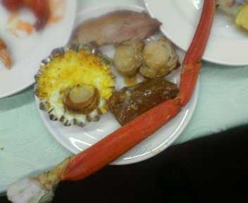 連合青森旗開きで食べた蟹足、ホタテその他です。