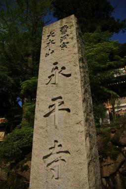 到着しました、永平寺 まずは傘松閣、別名絵天井の大広間へ 圧巻の美しさ!しばらく見とれちゃいました 長い廊下を渡り法堂へ向かう しかし廊下はホントきれいでツルツル、手入れが行き届いていました途中にある承陽殿 法堂へ ここからの眺めは最高静寂の中、川の流れる音、木々のせせらぎ、風鈴(?)の音が絶妙にMIXして最高の癒し空間でしたしばらくの間、まったりとしてしまった 帰りは階段を下り山門へ 永平寺(えいへいじ)は、福井県吉田郡永平寺町にある曹洞宗大本山の寺院である。山号を吉祥山と称する。開山は道元、本尊は釈迦如来・弥勒仏・阿弥陀如来の三世仏である。總持寺とならんで日本曹洞宗の中心寺院(大本山)である。宗派 曹洞宗 寺格 大本山 本尊 釈迦如来・弥勒仏・阿弥陀如来 創建年 寛元2年(1244年) 開山 道元 開基 波多野義重 (ウィキペディアより転載)参拝を終えたあとはすぐ前を流れる永平寺川のあたりを散策 いや~素敵なところでしたちょっと遠いけどまた来よっと