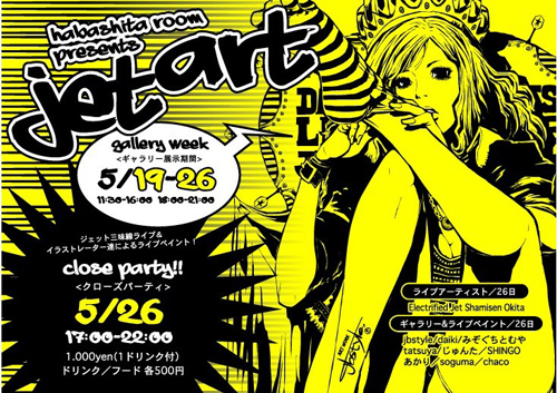 今週末の土曜日から名古屋市西区の幅下にあるカフェ「HABASHITA ROOM」にて、展示会およびパーティをします。ギャラリーの展示が19日から26日まで、最終日の26日はクローズパーティとして、ライブペイントを行います。名古屋を代表するイラストレーターjbstyleさんを筆頭に個性豊かなイラストレーターの方々に混じってぼくも参加させていただきます。当日はお店のオーナーOKITAさんの「JET三味線」の演奏もあるそうなので楽しめること間違いないと思います。お時間のある方、ぜひお越しください^^ぼくは今からすでに緊張しまくっておりますが色んな方にぼくを知ってもらうチャンスだと思って精一杯頑張るつもりですので、どうか応援よろしくお願いします。「HABASHITA ROOM」