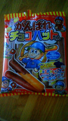 10月22日チョコバットです。駄菓子界では有名で定番だそうで、昔を懐かしめたりするそうです。わたし、初めて知ったよ。大阪では有名なんでしょうか。「源氏パイ」で有名な三立製菓さんの商品です。源氏パイは大好き。好きすぎて気持ち悪くなるくらいまで食べたこともあったなぁ。見た目はフィンガーチョコレートが大きくなった感じ。ビスケットチョコだと思って食べてみると、中身はまさしくカニパン。カニパンにチョコレートがコーティングされています。もそもそして、口の中の水分がみるみるうちに奪われていきます。不思議な食べ物です。最近はスーパーにもたくさん駄菓子が売られるようになったもんね。子供より大人のほうが楽しんでるかも。小さいころのよく食べてたお菓子といえば・・・ドラえもんのチョコレート。丸くて棒が付いてて2個入りの。今も売ってるのかしら。