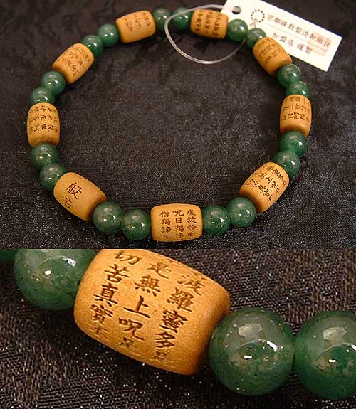 翡翠(ジュエリー)白檀 般若心経ブレス 翡翠仕立て般若心経の全文が刻まれたブレスレット白檀の木は、木から発せられる優しい香りがあります。身に着ける方を優しい芳香で包み込み、気持ちを和らげてくれるでしょう。香木の芳香漂う白檀を素材に使用し彫り上げられた ...■☆人気ランキング☆ ジュエリー・ アクセサリー(女性用)スリーストーン | ファイブストーン | ハート | フラワー | 馬蹄 | スター | クローバー | リボン | クラウン | 苺 | イニシャル | ネーム | キューブ | バラ | 蝶(バタフライ) | 鍵 | 雫 | クロス | 勾玉 | 卵 | ピラミッド | ネコ |