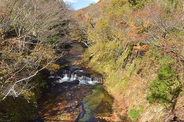 古い橋の上から広瀬川を見る ここも広瀬川 関山に源流に沿い国道が