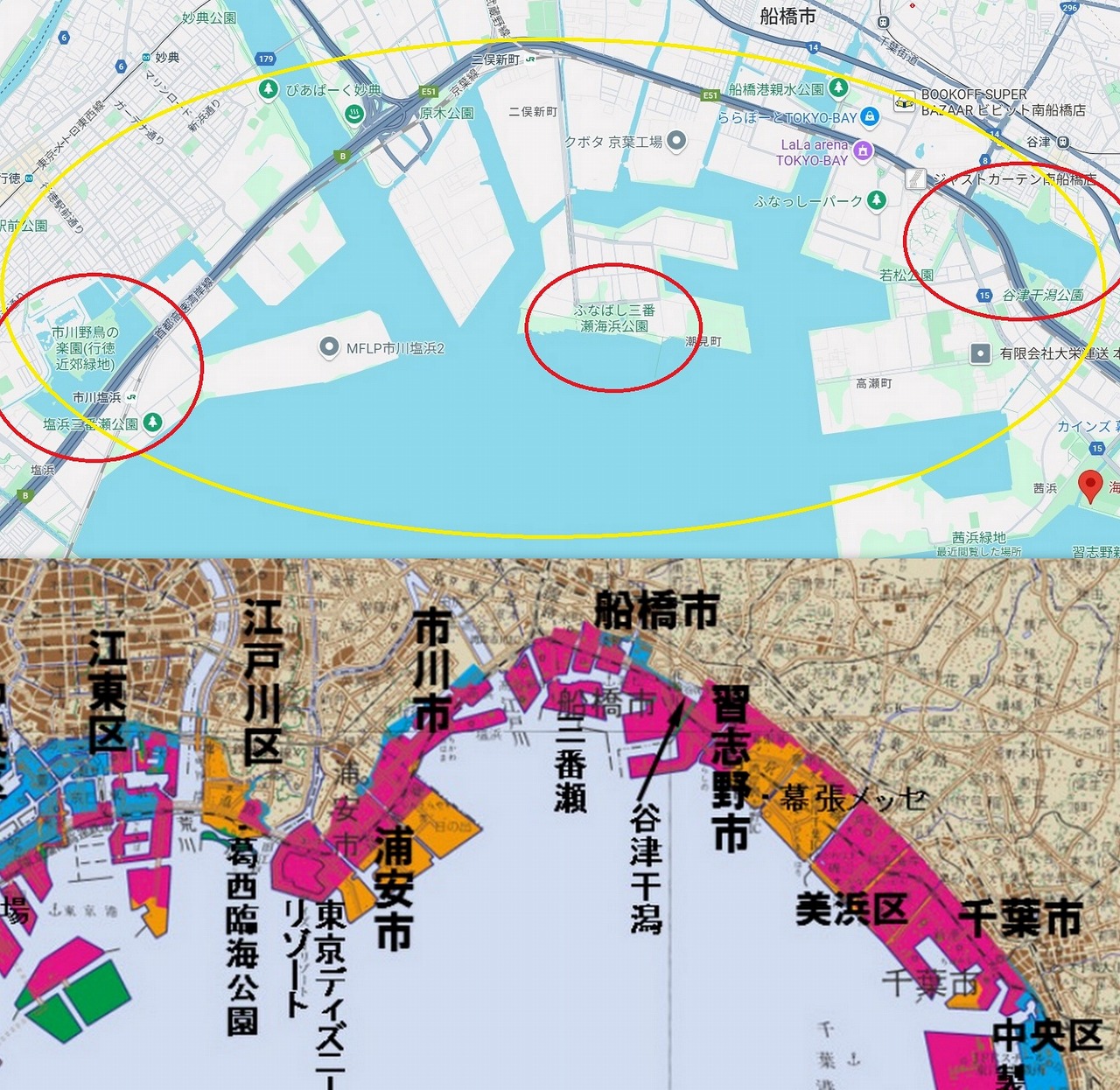 下の黄色く囲った部分で浦安・市川・船橋・習志野の