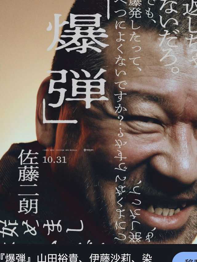 映画「爆弾」鑑賞。面白かった。佐藤二朗演じるスズキタゴサクと交渉する刑事の言葉の殴り合いに息を呑む。軽いジャブの応酬から全盛期のマイク・タイソンのように剛拳を畳み掛けたり絶妙なフットワークでパンチを交わしたり終始タゴサクペース、結幕はいかに。奇演俳優佐藤二朗、大好物です。