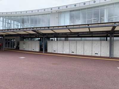 この壁の向こうに原付、自転車が置けるのだが、もう満車