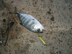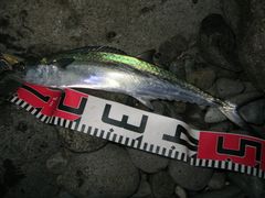 10月29日(月)この日は、毎週のように潰されていた土曜日の代休でポン。世間に超うとい僕ちゃん。フレスポ深堀とは、南部の少年サッカーチームと思っていたんだが、行ってビックリお店やさんの集合体でした。Honeysなんてはちみつ専門店?まであったのう。まあ、そんなことはど~でもえ~んだが、懲りずに連日のナイトシバスゲームで午前1時釣り場到着。予想通りライズの連発。こりゃもろたばい。が、予想に反し全く反応なし。やば。すでにルアーを見せすぎている。手持ちルアーを次々ローテーション。魚はおるんだが・・で、ようやく盤洲干潟にショートバイトしゃーないんで、最強アイテムグース125Fチャート投入で、またまたショートバイトぐぬう。すでに2時間近く経過しているポイント見切るタイミングを誤った。で、手前前方45度にルアー投げ込み後方30度ぐらいの位置にルアーがさしかかった時に・・ゴゴン!ようやく乗った!で秒殺。やはり仔ヒラか。マル釣りたかったんだが。その後、立ち居地変えバイブにHITもバレ。で午前4時過ぎ一旦帰宅。で、寝るのはもったいない時間なんで午前5時過ぎ青物狙い。青物狙いは一旦終了宣言したが、この潮周りなら間違いなくでるでしょ。ちゅうことで、マイブームのゴロタ入り。で、すでに師匠の『謎のOYZ様』も来ている。今日こそ、勝利せんばばい。で、毎度の愚の骨頂のジグ投げ。アタリ一面、ベイトが多くサワラやらメッキやらスズキやらフイッシュイーターがなんでんかんでんライズでポン!で、ドカン!ジグのただ早巻にHITで上がったのは・・仔メジロ(長崎でヤズ)42センチが、この後エソのみでアタリすらなく午前6時45分試合終了とした。で師匠『謎のおやじ様』との勝負は・・青物はお互いヤズ1本ずつの1-1のドローが、師匠が外道のタチ2本釣っておりPK負け。今日も勝てんかったのう。魚はたくさん居ったのに反応悪すぎ。本日の釣果。ちなみに、このサイズのヤズはスーパーで1本1200円ぐらいで売られてましたよ。ヒラはスーパーでは見かけませんねえ。
