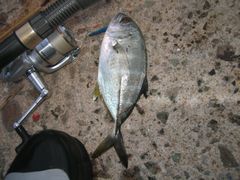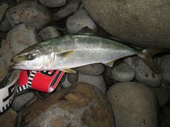 10月14日(日)今日は完全休日決定。ということで、朝5時起き。で5時半過ぎには釣り場到着。当然マイブームのゴロタ入り。他に当然だれもおらん。ひゃほう!が!10メーター先に謎の明かり。こ、これは・・まさか・・師匠『謎のおやじ様』のあ○まか。やはり、間違いなく挨拶して同じポイント入り。青物狙いのひとつの基本。自分より上手な人と釣りをすること。これは、青物が回ってきた状況が確認できる可能性があがるからなのだ。で、さっそく『謎のおやじ様』がサワラ50センチ程度をGET。で、僕ちゃんには・・軽く40UPのヤズ。個人的にヤズと言う呼び方は嫌いなんで、本州でいうところのメジロと呼びますばい。で、『謎のおやじ様』が軽く40UPのネリゴGET。ありゃ1キロ越えとるね。で、僕ちゃんの目の前で、波紋が・・そのまま回収中のジグを通すとあっさりHIT。食って反転するのが丸見え。ラインも5~6メーターしか出てなかったんで秒殺。(笑)メジロ2匹目。こいつも軽く40UP。44~45センチぐらいあるかな。で、またまたHITするも今度はアワセが効かずバレ。その後も爆りそうだったが、先週買ったばかりのダイワのフリームス4000Jが突然巻き上げ不能状態に(怒)それやこれやで、師匠『謎のおやじ様』からシマノのアルテグラ6000番を急遽レンタル。(※ありがとうございました)で、またまた『謎のおやじ様』が50サイズのサワラGET。で、僕ちゃんにもHITするもあと数メーターのところでバレ。(泣)これにて完全に地合が過ぎ両者試合終了。3-2で負けでしたわ。バラシがなけりゃドローだったんですけどね。地元?の達人はヒラスばらしたみたいね。でも50センチ近いヤズ獲ってましたよ。流石。リールはタカミヤに即持ち込み。返品扱いで、返金となりました。最近の『ダイワ』ちょっとヒドイね。