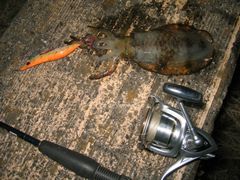 10月27日(土)今朝も懲りずに、ゴロタに青物狙い。んで、午前5時30過ぎ釣り場到着。地合到来と思った午前6時頃いやな感触が手元に伝わってきたと思ったら・・PEの高切れ。どうやらフォール中にタチにやられたらしい。これだから、タチは嫌いだぜ。んで、その後あたりすらなく午前6時45分試合終了とした。これにて、今シーズンの青物狙いは終了いたします。ひまつぶしに超近場でサワラは狙うかもしれませんけどね、テヘッ!で、目を凝らすと師匠『謎のおやじ様』発見あたまですぐわかりましたよ。!誰だ!『○○頭だろ』って言ってるのは!ちなみに、帽子でわかったんですよ。で、その後、ちょいと移動し家から超近場のポイント調査。で、そこですばらしい出会いがありましたね。ウデがある人は話の内容、テクニックを見ればわかります。ショアルアー・ジギング・エサ・ヤエン・エギングすべてこなされるそうです。で、エギングテクニック盗ませてもらいました。ミズイカってこうやって釣るんだていうのをね。正直、またお会いしたい方でしたYo!