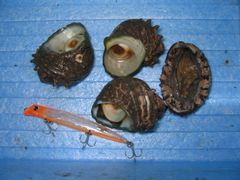 2008年1年5日(土)年末年初は自身初?となる6連休だったんだぐぁ。悪天候&クサレ潮周りで釣行する気にならず。んで、テンションまったくあがらんのだが、このままグダグダしとっても、うつ病になりそうなんで無理やり釣行。が、期待のポイントは毎度の先行者達が占拠状態。で、しゃ~ないんで潮止まりに海産物捜索。が、潮下げすぎでほとんど居りません。(泣)しかも、小型のタモ忘れた。海中の特大サイズのサザエは手をくわえて見てるだけ。ようやくサザエ3個とアワビ1個GET。コモモはサイズ比較のためどぇす。んで、下げ潮流れるも狙いの小モノ達の回遊なし。初釣行はボンズスタートどぇした。いや~まったく。やってられませんわ。テンションあがりまへん。シバス狙うたほうがマシでしたな。