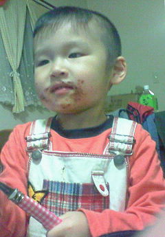 ケーキを買ってきたので殿喜んでチョコレートケーキを食べたら、顔中チョコレートだらけo(^∇^o)(o^∇^)o