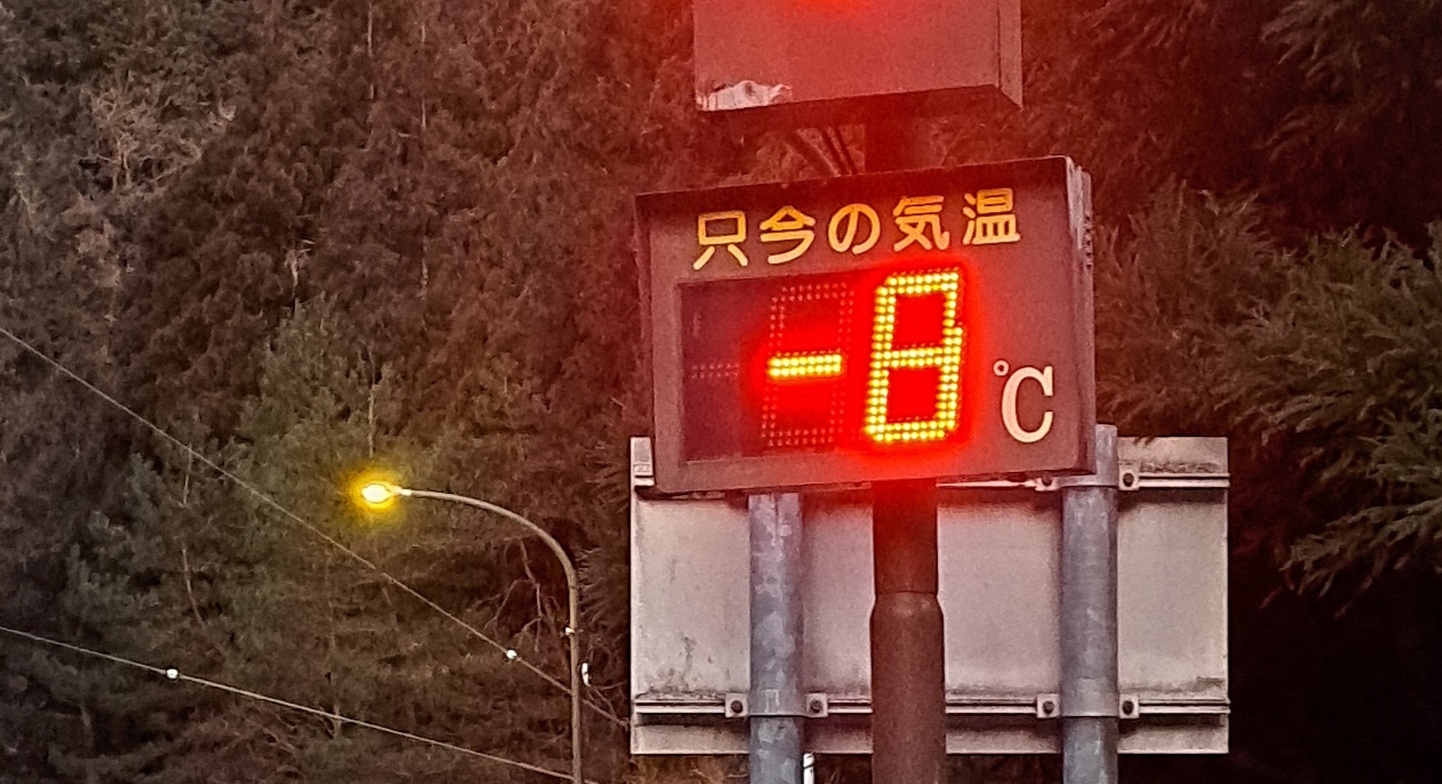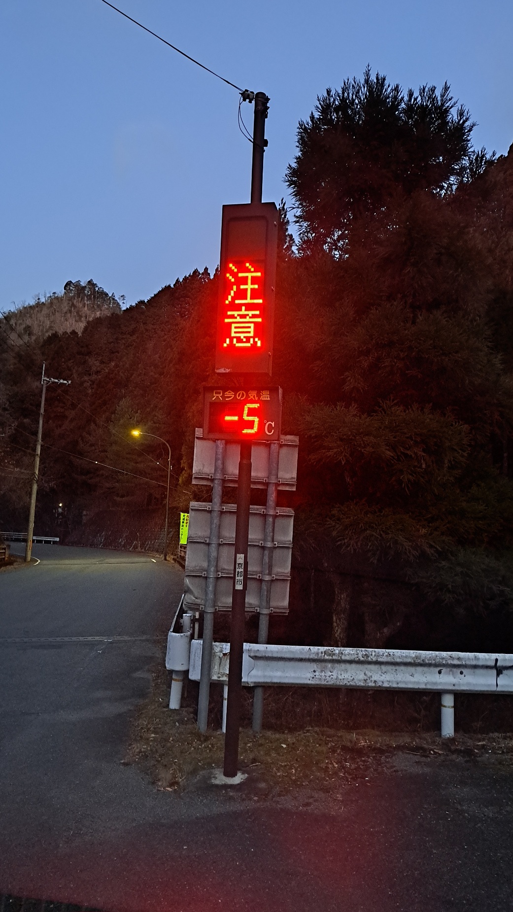 ココんとこ0℃が続いてたけど今朝は予報通り冷えてます。。高雄は油断してたらやられるぐらいツルツル⛸️で美山も雪はそんなに無く寒い朝になってます。。