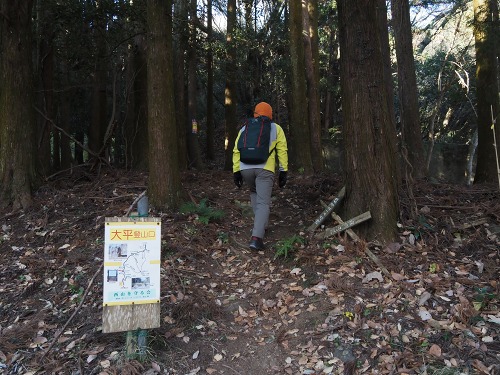 金時山から足柄峠を挟んだ反対に矢倉岳という山がある。高さは870mほどなので、ハイキング程度なのであるが、山頂が開けていて、富士山ほかの展望がすこぶるいい。足柄古道にある地蔵堂。このそばの駐車場からスタートこの先の川を渡ってあとは登っていく道標は十分時々明るい場所に出るがほとんど樹林帯左に愛鷹。それほど寒くもなく、天候にも恵まれ、2024年の初登りとしていいスタートだそんなに標識はいらないがかわいい、天狗のマスコットも標識に括りつけられていた