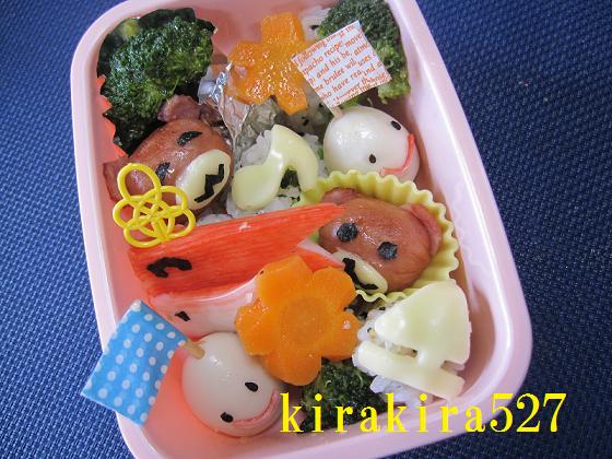 ゴールデンウィークも終わりましたが皆様どうお過ごしでしたか?家はmomotanが水疱瘡になってしまい連休中はずーっとお家に居ました今のうちになっておいた方が良いですもんねと、いう訳で久しぶりのお弁当です なんだかざっくりしてますが。。。パンダ弁当です☆ハンバーグくらい入れてあげれば良かったですね・・・忘れていました。。。いや、お弁当箱が小さすぎて入らなかったことにしておきましょそして、momotanリクエストのこいのぼり。次は何弁にしようかしら。そろそろキャラクターものとか。。。 う、ん、、、、、、頑張ります