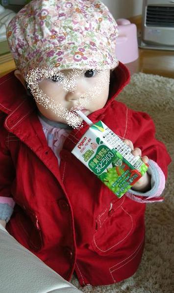 散歩の後のジュースは格別だなぁ~ なんて思ってるのかな、、、